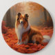 Shetland Sheepdog in Autumn Leaves Fall Inspire Button