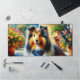 Shetland Sheepdog in Cottage Garden Scene Desk Mat