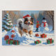 Shetland Sheepdog Running Snow With Christmas Hat Jigsaw Puzzle