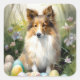 Shetland Sheepdog with Easter Eggs Holiday Square Sticker