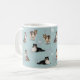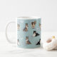 Shetland Sheepdogs in a repeat pattern design on a blue background
