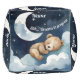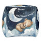 Introducing our personalised cubby bear cubby pouf with a sweet image of a baby bear peacefully sleeping in the clouds. The editable text on the pouf reads "Shh...dreams in progress," with a special place to add the baby's name for a truly unique touch.