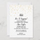 This Shhh It's a Surprise! retirement party invitation is perfect for a fun retirement celebration or classy reception. The design features gold confetti with elegant black calligraphy on a white background.