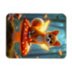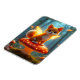 This enchanting artwork features an endearing fox-like creature with glowing fairy wings, resting peacefully atop a radiant red mushroom in the heart of a magical forest. Tiny fireflies drift around in soft, golden light, adding sparkle and wonder to the dreamy scene.