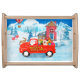 Shiba Inu Dog Christmas Delivery Truck Snow Serving Tray