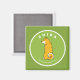 Square Magnet with an illustration of a Shiba, sitting upon a yellowish green background.