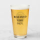 Custom "Reserved for ..." personalized pint glass featuring gold and silver medieval shield on the front! Simply add a name for each glass. Great for places with regular customers: bar, pub, game room, restaurant, personalized glasses at home, or any place. Click "Personalize" to test it out and see how it looks on this page! Made with top quality Libbey barware, and holds standard 16 ounces.