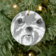 Lightweight, smooth, pure white ornament with nice sheen. Perfect size to be seen from across the room ... and to attract closer inspection! Price was great for ordering enough for the whole family! Clear, bold black design just as requested. Matches the order exactly. Just so nice!