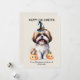 This greeting card features a cute Shih Tzu dog wearing a witch hat with little pumpkins. This watercolor design is modern and ready to be personalized. On the back, it says “Pup-kin spice and everything nice,” but this can be changed if desired. It’s the perfect card to send to friends and family during the Halloween season!