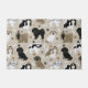 Cute Shih Tzu dogs with black, white, gray, gold and mask coat colors with paw prints and dog bones pattern.