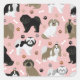 Cute Shih Tzu dogs with black, white, gray, gold and mask coat colors with paw prints and dog bones pattern.