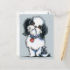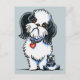 Expressive character illustration of a black and white Shih Tzu with bear toy by Andie, illustrator and creator of Off-Leash Art.