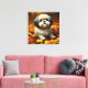 Shih Tzu Puppy Dog Playing in Fall Leaves Canvas Print