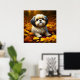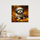 Shih Tzu Puppy Dog Playing in Fall Leaves Poster