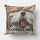 Shih tzu tongue funny custom text pillow. Cute, fun, silly female shih tzu, brown and white dog with big character. One curious lady cuddly lap dog that will brighten your day.