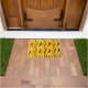 Shima-Shima, colorful bright yellow pattern with red, green, black and white trim.