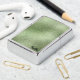 Image of a light green shimmering iridescent abstract background. Optional monogram.