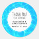 Wedding thank you stickers with a photograph of clear blue pool water, with shimmering reflections. A white circle layered over top with your text inside.
