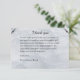 Show your gratitude with this elegant "Thank You" card from our Shimmering Filigree collection. Featuring a delicate silver filigree design and a soft grey watercolor texture, this card provides a sophisticated way to thank your guests for their love and support. The interior text is fully customizable to include your names and a personal message of thanks.