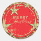 Shimmering Gold Stars on Red Glitter Christmas Classic Round Sticker