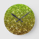 Shimmering Light Green Gold Glitters Round Clock