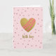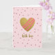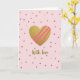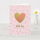 On the front of the card a large, shimmering golden heart sits at the center, catching the light like a treasured keepsake ❤️. Three diagonal fuchsia-pink bands sweep across the heart, like playful ribbons that suggest a close bond and shared laughter. The background is a soft pastel pink, calm and gentle, with scattered tiny rosy glitter dots that drift like confetti around the main shape. The dots vary slightly in size, adding depth and a cozy, romantic glow without crowding the design. Below the heart, the words “With love” appear near the lower center in flowing, cursive-style lettering, colored in warm gold to match the heart. The mix of glittery textures against the smooth pink backdrop feels like a quiet celebration, with a touch of sweetness 🌼. The golden heart has a rich sparkling texture, while the diagonal pink bands look smooth and opaque against it.