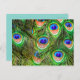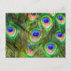 Postcard featuring a close up of the beautiful shimmering eyespots on a peacock's train, highlighting the iridescent green, blue and bronze details of these tail feathers. Great card for bird and nature lovers. Photo taken at Arcadia, California.