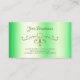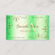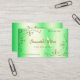Make a lasting impression with this elegant and luxurious business card design featuring pretty gold ornate corner borders with cute hearts on a luminous shimmery green colored background.