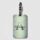 A sleek shimmery green metallic sheen then in the center is a large monogram letter and a name where you you can personalize it to make it uniquely your own. Elegant modern chic.