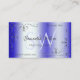 Make a lasting impression with this elegant and luxurious business card design featuring pretty shimmery silver ornate corner borders with cute hearts on a luminous royal blue colored background.