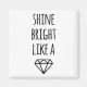 Shine bright every day! Give yourself a little dose of inspiration with this magnet. Features "shine bright like a" in a handwritten style font with a graphic diamond illustration.