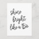 Put a smile on a friend's face with this pretty typography quote postcard featuring "shine bright like a" in black handwritten monoline script lettering with a hand drawn diamond outline illustration.