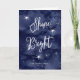 These beautiful Hanukkah cards say "shine bright", in trendy white handwritten script and text, on a deep blue night sky background with many stars. Create your own personal message on the inside.