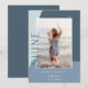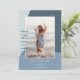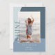 A chic and elegant Hanukkah card design featuring a single vertical or portrait-oriented photo on a background of organic shapes in soft shades of iced winter blue. "Shine" appears alongside your photo in understated type. Personalize with your family name and custom Hanukkah greeting beneath for the perfect finishing touch to these nature-inspired 2021 photo cards.