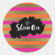 Shine On Pink Orange & Faux Gold Metallic Stripe Classic Round Sticker