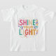 This t-shirt design is a radiant reminder to share your inner light with the world! "Shine Your Light" is displayed in a vibrant, mismatched color palette, with each word bursting in a different hue that evokes hope and inspiration. This design is perfect for anyone who wants to spread positivity and encourage others to embrace their unique brilliance
