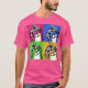 My 11 yo wore adult XL (5’7” 165#). The 8yo is small framed. She wore adult small and tied it in the back. Grandma wore adult large with long sleeve shirt underneath. Tall girl adult medium. Dark haired male adult large. Good quality dark Heather gray, Gildan brand shirt. -it was next up from basic choice and cost about $20 per shirt. Not too thick or thin. Washed and dried well, no major shrinkage. Not see-through. Can wear a bra under it fine. Screen print is just as shown and well done, front and back.