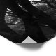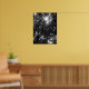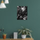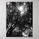 This attractive black and white print features the glow of the bright sun shining through the tree branches.