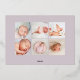 Modern elegant birth announcements feature your favorite horizontal or landscape oriented newborn photo with "introducing" across the top in rose gold foil calligraphy script lettering. Baby's name and birth stats appear beneath. Add six additional photos to the back in a collage layout, or delete to leave blank.