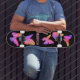 A Colorful Skateboard featuring beautiful and bright shining Pink Butterflies on a black background with a name in Pink which can be changed from the Personalize menu.