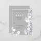Elevate the sophistication of your wedding with our Shining Silver Botanical Framed RSVP Foil Invitation Postcard. This exquisite postcard showcases a stunning grey color scheme and an opulent silver foil border that radiates elegance. The border is embellished with eye-catching silver foil flowers and foliage, infusing a hint of allure into your special day. This postcard is certain to leave a lasting impression on your guests and establish the ambiance for an exceptionally memorable wedding celebration. With its enduring charm and top-notch materials, the Shining Silver Botanical Real Foil postcard is the ideal selection for couples seeking to infuse a dash of opulence into their wedding stationery. Create an unforgettable event with this refined invitation that harmonizes timeless elegance with contemporary minimalism.