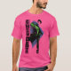 My 11 yo wore adult XL (5’7” 165#). The 8yo is small framed. She wore adult small and tied it in the back. Grandma wore adult large with long sleeve shirt underneath. Tall girl adult medium. Dark haired male adult large. Good quality dark Heather gray, Gildan brand shirt. -it was next up from basic choice and cost about $20 per shirt. Not too thick or thin. Washed and dried well, no major shrinkage. Not see-through. Can wear a bra under it fine. Screen print is just as shown and well done, front and back.