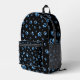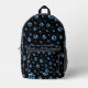 Shiny Blue Paws on black Background Print Pattern Printed Backpack