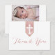 This thank you card is perfect for baptisms, christenings, and confirmations. Featuring a decorative cross on a blush pink banner with an accent of gold on the border. Personalize with your photo and text using the template fields provided.