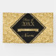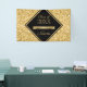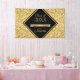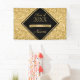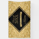 Elegant gold and white sparkling glitter with a black circle and gold ribbon