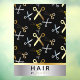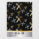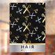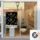 Stylish personalized window cling design for hairstylists with faux gold and silver scissors pattern on a black background. The text is fully customizable.