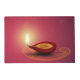 Shiny and bright Happy Diwali illustration: red diya (a cup-shaped indian oil lamp) with an indian ornamental mandala and a paisley on a beautiful bokeh background.