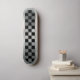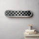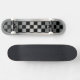 Shiny look of brushed metal layer, then a layer of black and transparent squares like checker board. Then of the same brushed shiny metal look trim around the deck. Four Deck sizes available, this is largest.