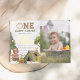 Shiny One Happy Camper Bear Photo Boy 1st Birthday Foil Invitation