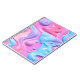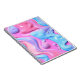 Colorful shiny pink, blue, purple and yellow plastic swirled abstract design with bubbles